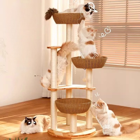 Árvore de Escalada para Gatos Moderna e Luxuosa, Design Multi-Camadas, Ecológica, Corda de Cânhamo Antiderrapante, Montagem Fácil, Segura para Gatos